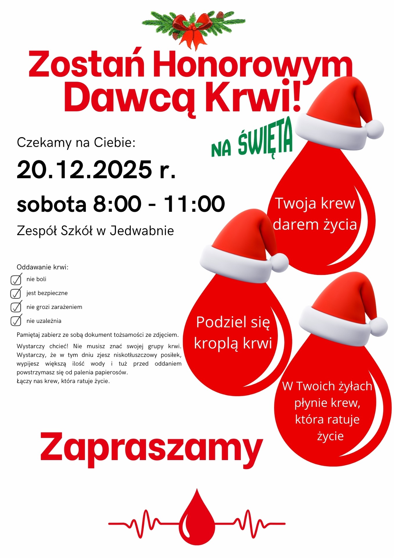 20 grudnia 2025 r.w godz. 8:00–11:00 w Zespole Szkół w Jedwabnie